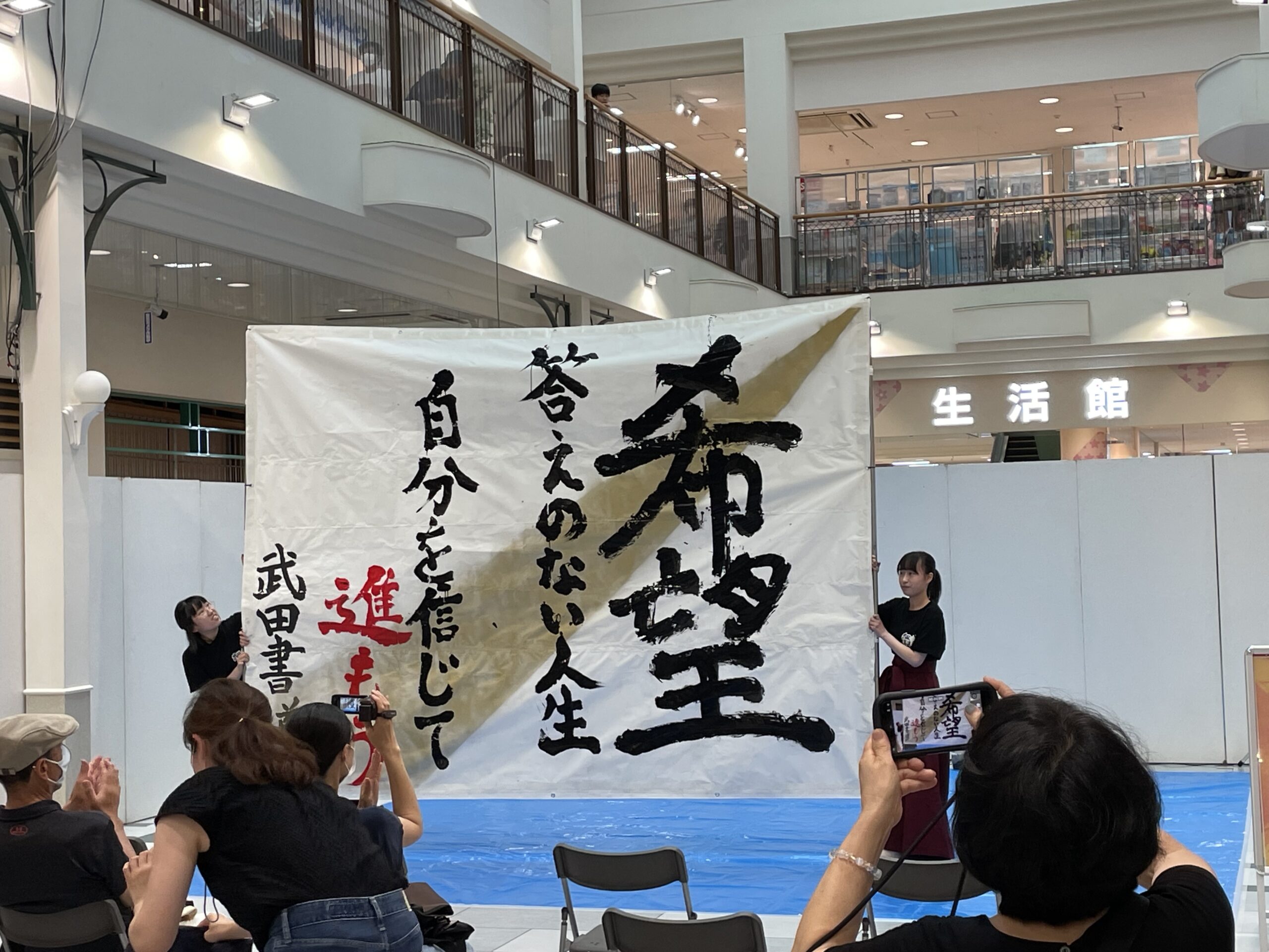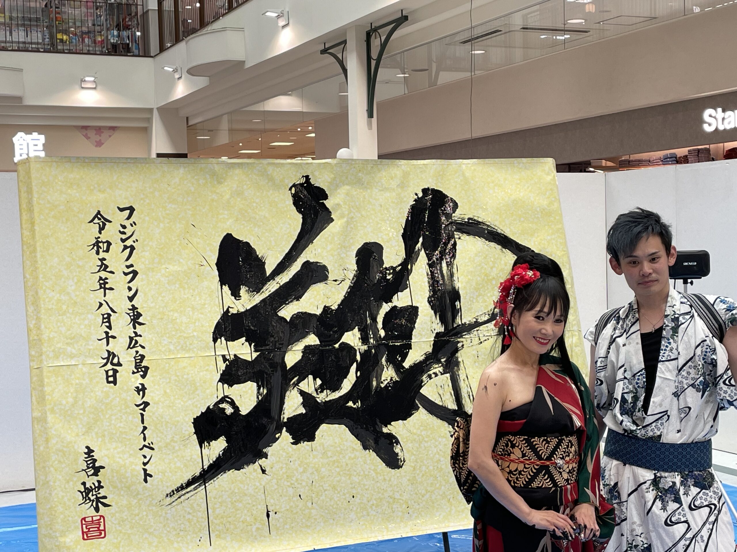 8月19日㊏に、フジグラン東広島で行われた、武田中学校・高等学校 書道部の生徒さんによる書道パフォーマンス & 書道家 星野喜蝶(ほしのきちょう)さん の書道パフォーマンスは大盛況でした。