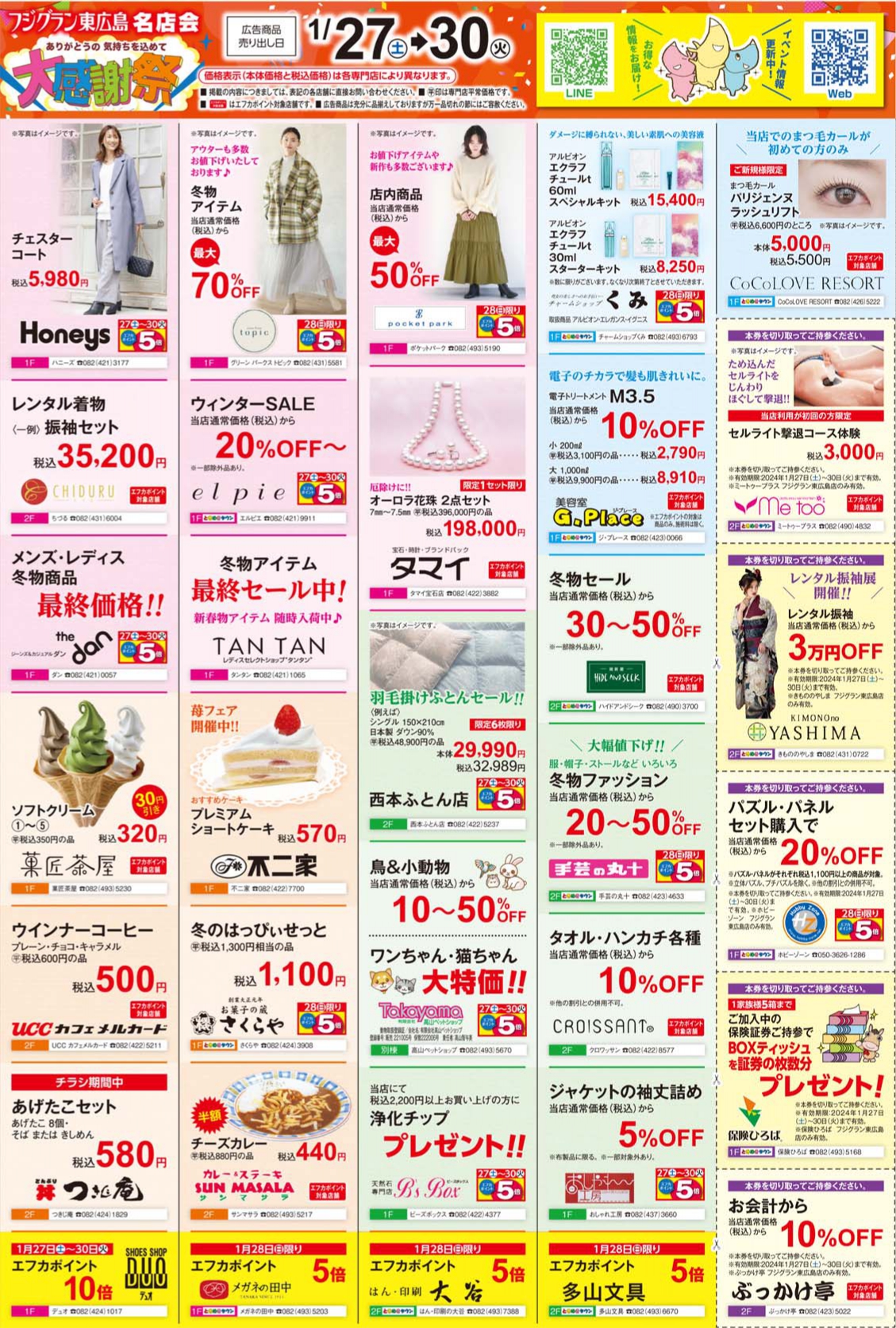 フジグラン東広島名店会 2024.01.25 フジグラン東広島名店会 大感謝祭!開催 開催期間:2024.01.27 ~ 2024.01.30 フジグラン東広島名店会の大感謝祭! ありがとうの気持ちを込めて開催します!