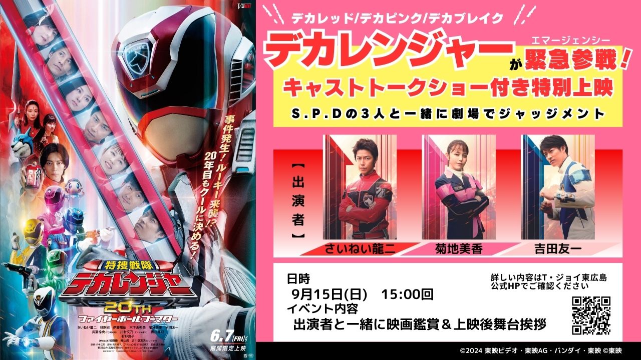 9月15(日)に『特捜戦隊デカレンジャー20th ファイヤーボール・ブースター』のキャストトークショー付き特別上映の開催が決定いたしました。